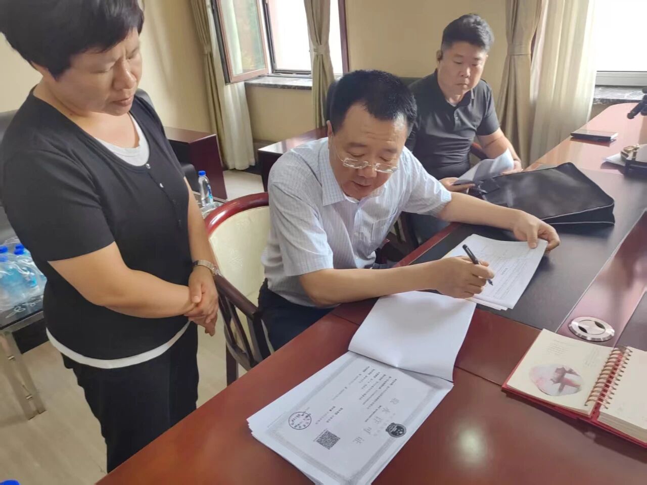 8月19日,第二执法检查组在兴辰温泉度假酒店查看取水许可证、取水台账等情况。摄影/乔微