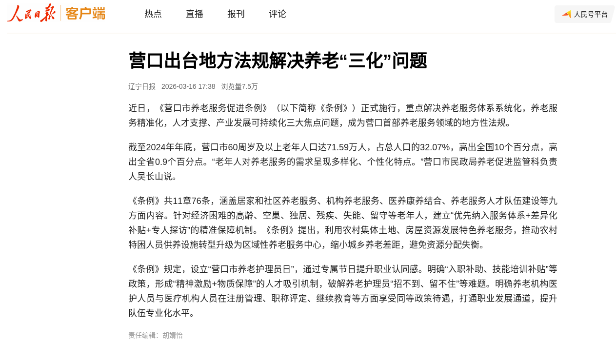 人民日报报道——营口出台地方法规解决养老“三化”问题